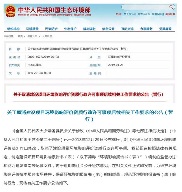 环境部取消建设项目环评资质行政许可事项后续相关工作要求