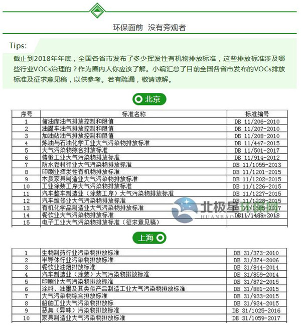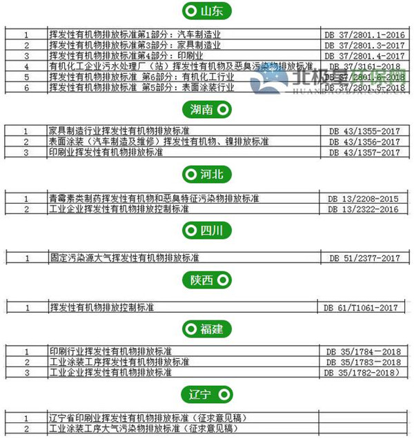 关于挥发性有机物排放标准(VOCs)的地方标准,目前已经发布的有这些