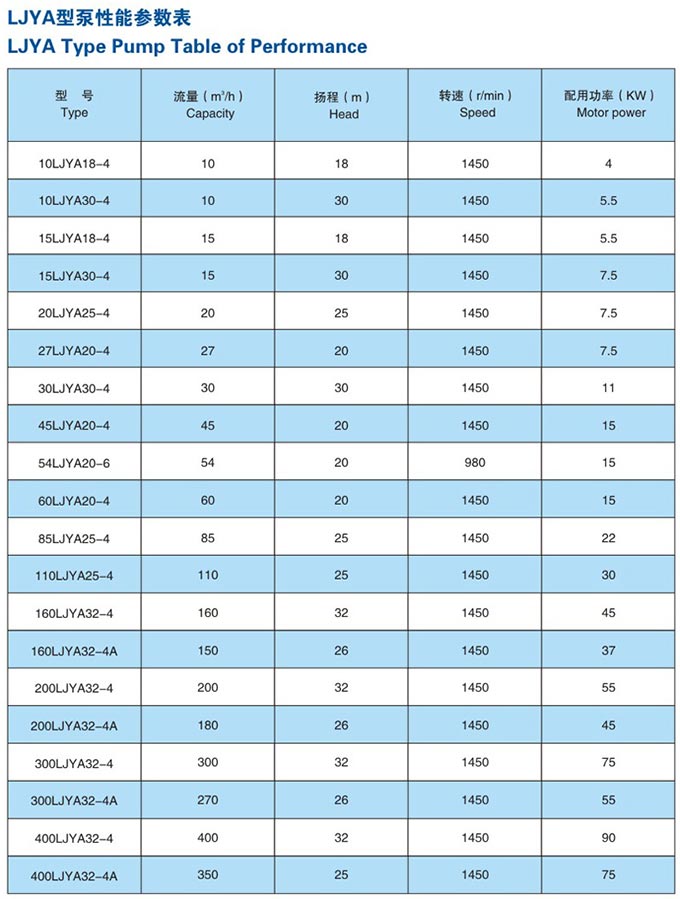 LJYA系列料浆泵为单级单吸立式悬臂式离心液下泵。叶轮为半开式,叶轮前后均配有耐磨盖,广泛应用于化工流程输送含30%以下固体颗粒,粘度低于200CP的磨、腐蚀交互作用的介质。特别适用于磷肥工业中输送磷酸、磷铵料浆等介质。